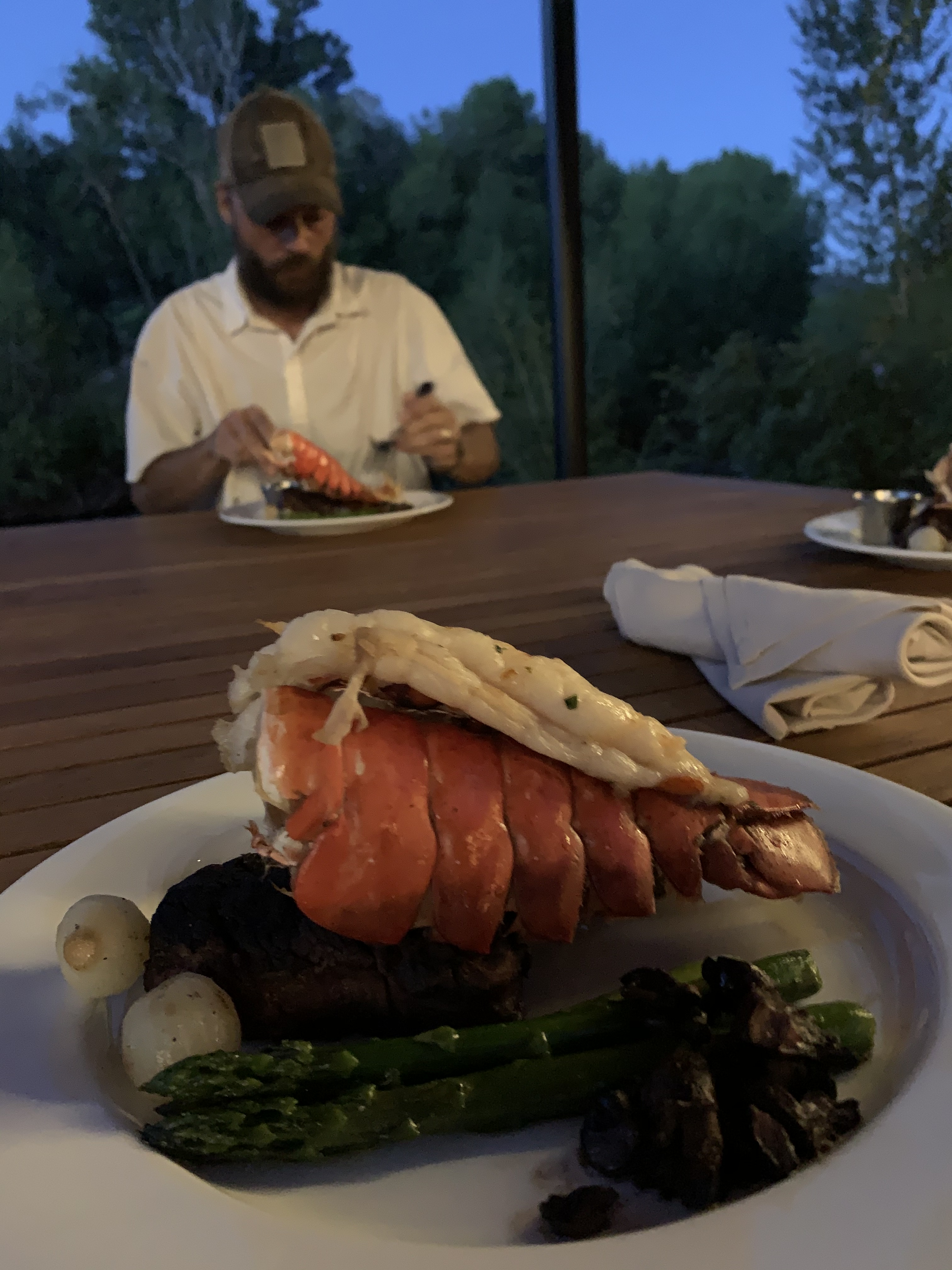 We have certainly craved playing music together and being out playing gigs in these months of CoVid. It has made us deeply appreciate the simple things, like being out on a summer night in the shade of the trees along the Roaring Fork River picking bluegrass music. We enjoyed a lovely evening at the Roaring Fork Club – thankful for the guests warm reception of the music and the kitchen staff providing us with an extraordinary surf and turf dinner after the show. July 7, 2020